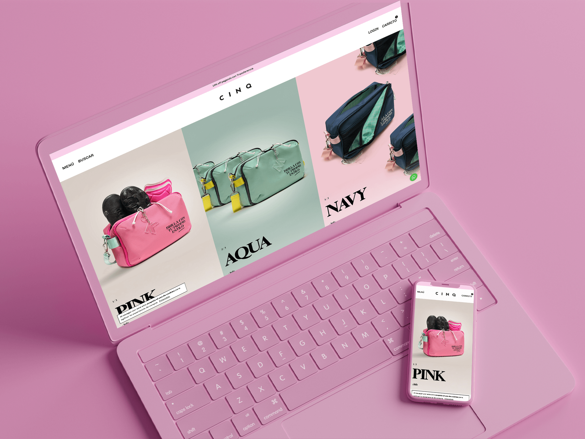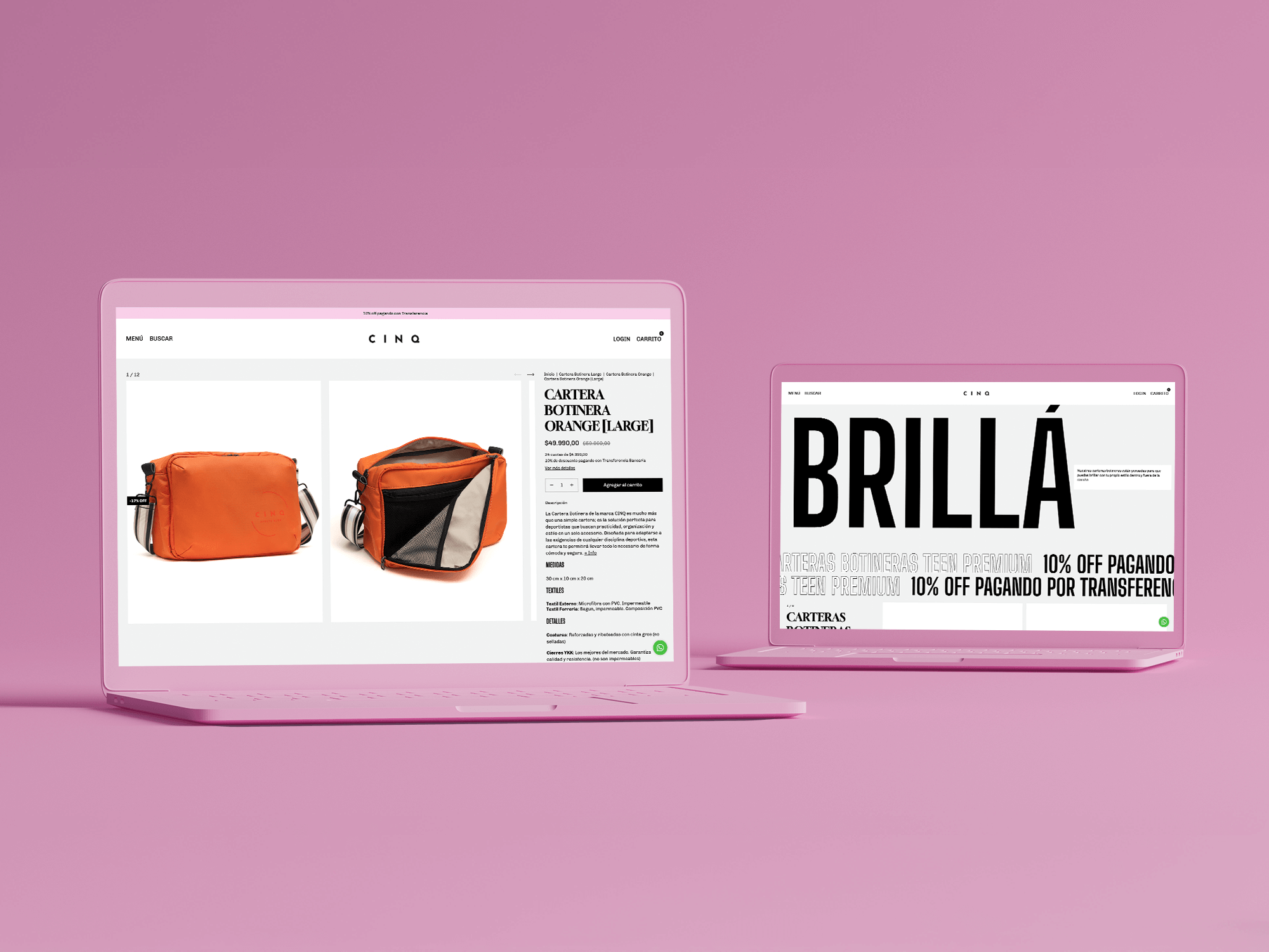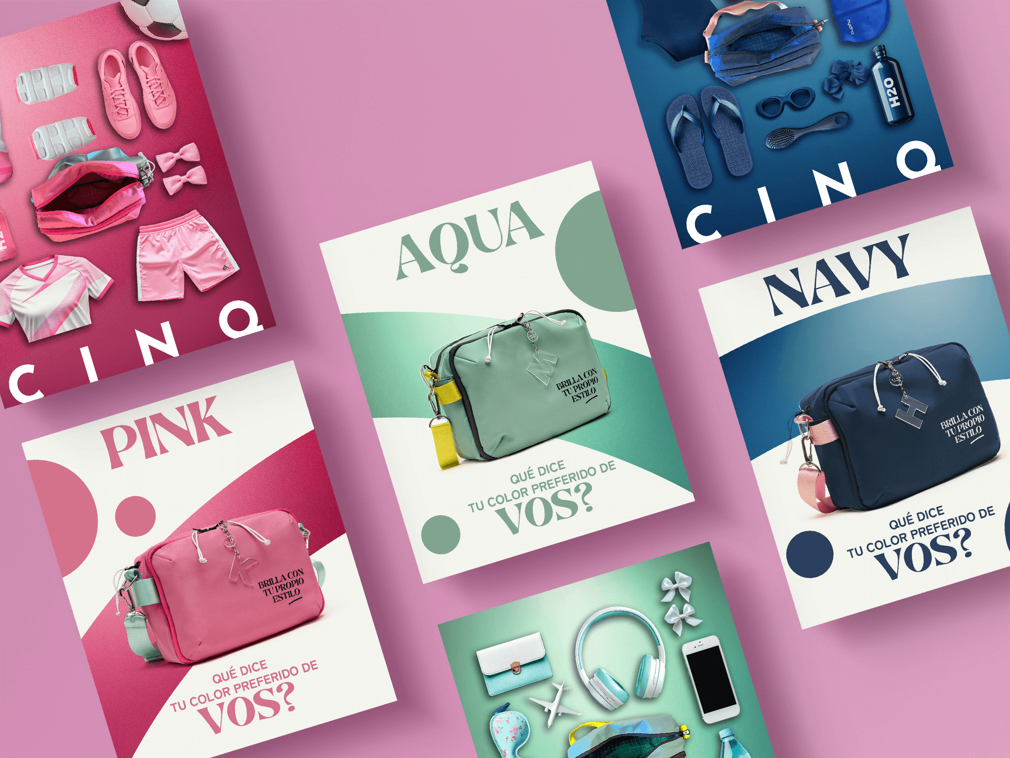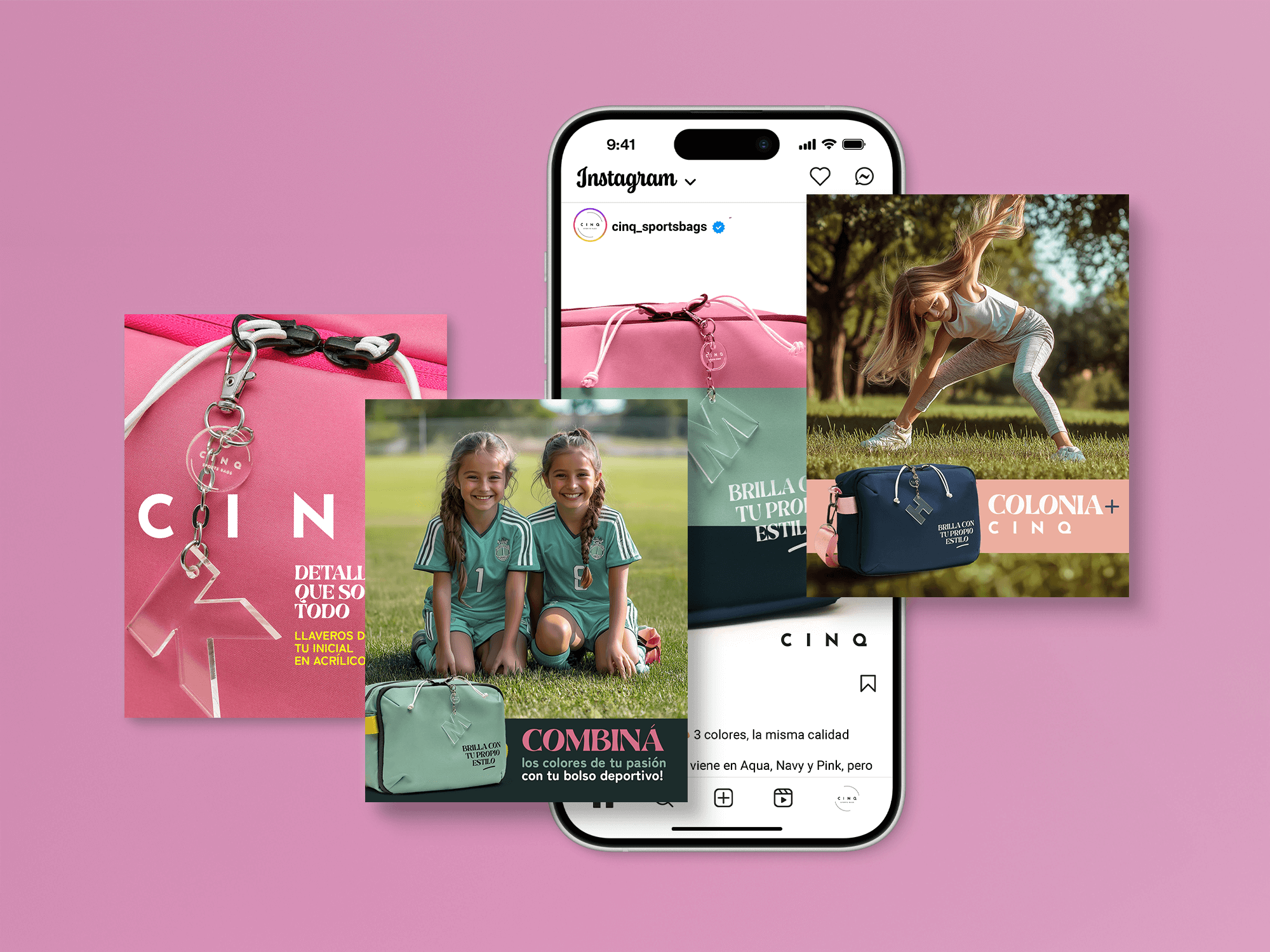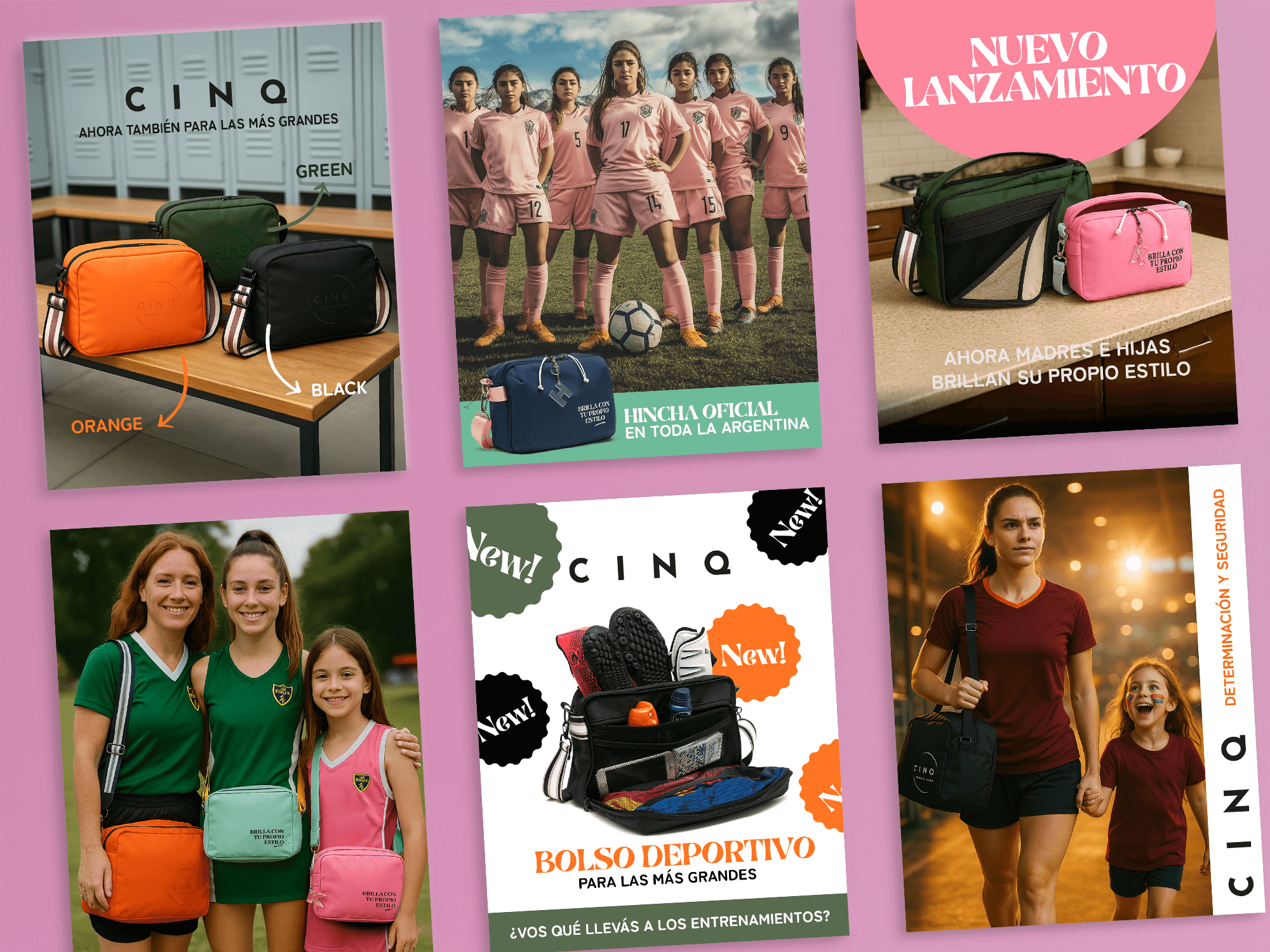 CinQ Sportsbags es una marca argentina que originalmente contaba con un único producto: un bolso botinero para niñas deportistas, disponible en tres colores. Sin inversión inicial en fotografía ni en branding, su presencia digital era básica y limitada.